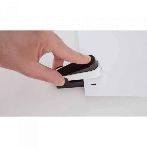 Sieht aus wie ein herkömmlicher Tacker und wird auch genauso gehandhabt, doch muss dieser KLAMMERLOSE HEFTER niemals nachgefüllt werden! Er stanzt und faltet einen winzigen Papierstreifen so aus den Blättern, dass diese solide miteinander verbunden werden – schnell, wirkungsvoll und sicher (keine Verletzungsgefahr durch spitze Klammern). Bis zu vier Seiten können Sie aneinanderheften und auf Wunsch beinahe spurlos wieder voneinander lösen. Maße: ca. 8 x 3,5 x 6 cm. Der Hefter ohne Klammern spart bares Geld, ist umweltfreundlich und jederzeit einsatzbereit – probieren Sie ihn aus!