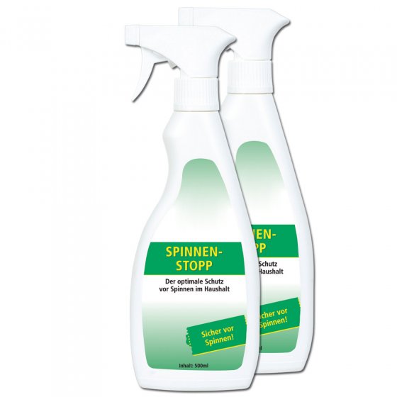 Probleme mit unerwünschten Hausgenossen? Damit Sie wieder Herr der Lage werden, sind hier zwei kraftvolle Helfer, made in Germany! Mit dem AMEISENSTOPP ziehen Sie jetzt an Balkontür, Terrasse und sonstigen Ameiseneingängen eine Grenze in Sprühform. Das Prinzip ist ganz simpel: Nur mit Hilfe ätherischer Öle werden Ameisen effektiv ferngehalten. Die unsichtbaren Duftbarrieren können sie nicht überwinden. Behandeln Sie Ameisenstraßen oder Ameisennester: Der Erfolg ist durchschlagend! Dank der äußerst effizienten, neuartigen Wirkstoff-Zusammensetzung wirkt der SPINNENSTOPP auf Spinnen aller Art wie ein „rotes Tuch“. Einfach die befallenen Bereiche und schon vorhandene Spinnweben besprühen, um einer neuen Einnistung nachhaltig vorzubeugen. Schon bald hat die Plage ein Ende! Inhalt je Flasche: 500 ml