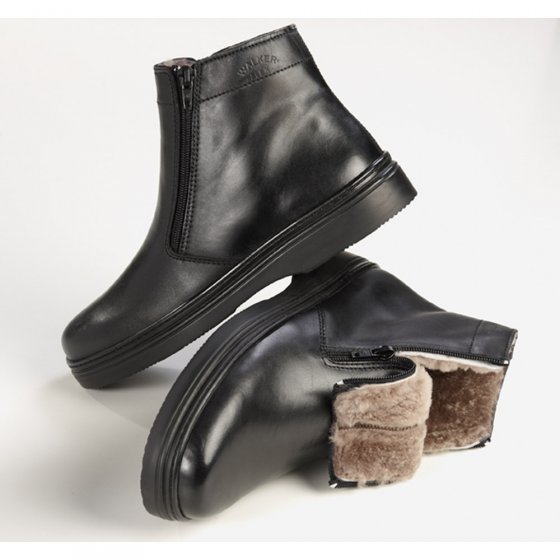 Ces BOTTINES CONFORT FOURRÉES en cuir Nappa et à la forme classique sont doublées de laine de mouton. Cette dernière vous assure une chaleur durable qui vous aidera à affronter le froid de l'hiver. Leur semelle en Texon® absorbe les chocs quand vous marchez et leur semelle d'usure en polyuréthanne est antidérapante, ultra légère et offre une excellente protection contre le froid. Des fermetures éclair sur les côtés facilitent l'enfilage. Semelle intérieure en fourrure synthétique 100 % polyacrylique. Le conseil d'EUROtops : les pieds doivent être à l'aise, surtout dans des chaussures d'hiver, pour ne pas que vos pieds se refroidissent. Commandez donc une pointure au-dessus de votre pointure habituelle !