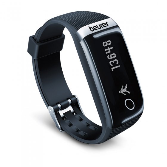 Parvenez-vous à atteindre votre objectif quotidien en matière d'activité physique ? Le bracelet d'activité compte les pas, la distance parcourue, la dépense calorique et la durée d'activité, rappels compris. Le suivi de sommeil enregistre les mouvements et la durée du sommeil. Capacité de mémoire : 15 jours et 15 nuits. Affichage de l'heure, de la date et du niveau de batterie ; alarme par vibration. Tour de poignet : env. 14,5 à 19,5 cm. Application gratuite "beurer HealthManager" incluse (transmission par Bluetooth®), et notification en cas d'appels entrants, textos et messages.