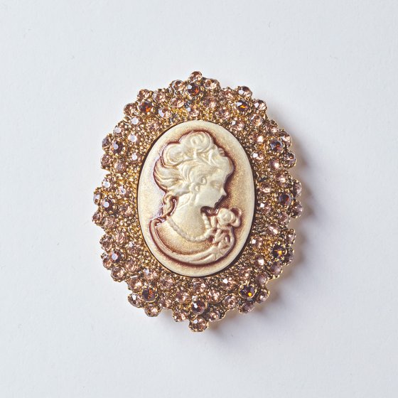Seit der Antike ziehen elegante Cameo-Schmuckstücke Frauen auf der ganzen Welt in ihren Bann: Die filigran-gearbeitete CAMEO-BROSCHE mit funkelnden Kristallen aus Österreich lässt die Nostalgie und Romantik vergangener Zeiten aufleben. Das bezaubernde Accessoire in goldenen und beigen Farbtönen unterstreicht wie kein anderes die Einzigartigkeit seiner Trägerin und passt zu jeder Kleidung. Maße (L x H): ca. 3,8 x 4,5 cm. Nickelfrei. Mit hübscher Geschenkschatulle. Eine dekorative Brosche, mit der Sie Ihrer Liebsten eine große Freude bereiten!