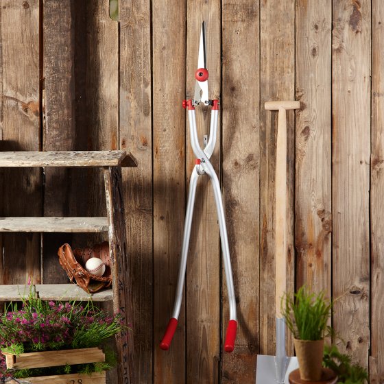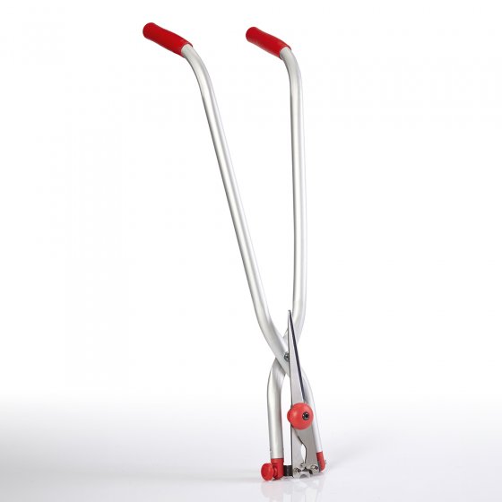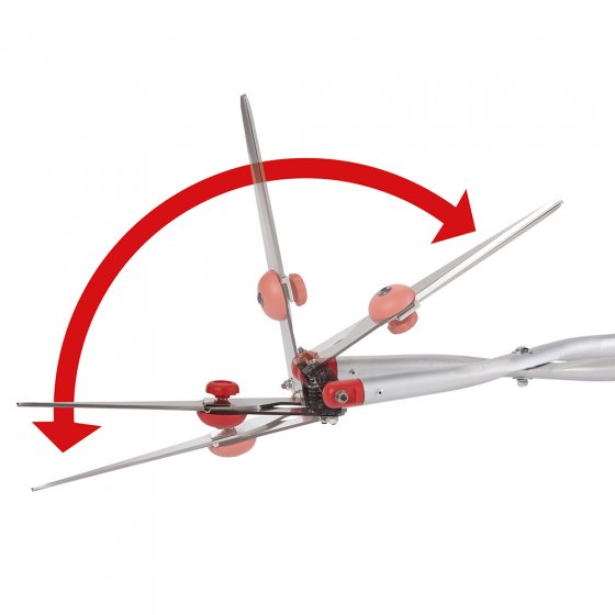 Pour tailler de hauts arbustes, des haies, ou des jeunes arbres, il faut souvent s'étirer et se mettre sur la pointe des pieds. Plus maintenant ! Les CISAILLES ULTRA LÉGÈRES À ANGLES MULTIPLES vous aident littéralement « à vous surpasser ». L'angle des ciseaux est ajustable sur 180°, ce qui permet de couper les plantes au ras du sol sans se baisser. Autre avantage : l'effet de levier des poignées de 90 cm renforce considérablement la force de coupe des cisailles ; il est donc facile de couper les grosses tiges de plantes. Dimensions (L x l x H) : env. 115 x 26 x 14 cm. Ne vous contorsionnez plus – à partir de maintenant, taillez vos haies dans une position confortable !