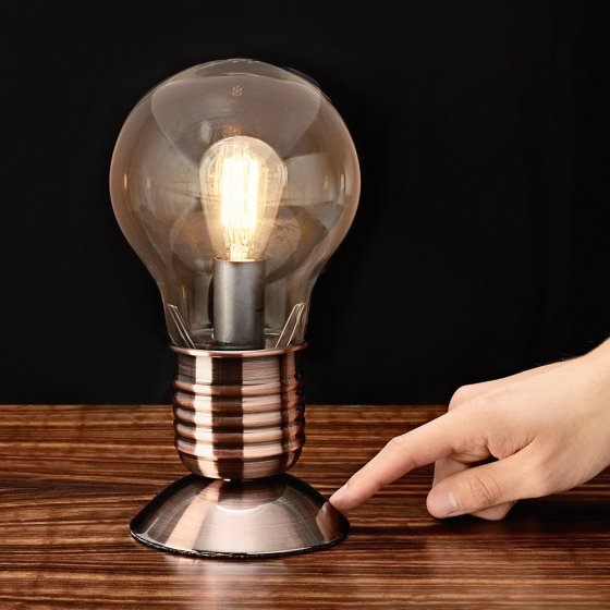 Rund 130 Jahre lang erhellte die „gute, alte“ Glühbirne Haushalte in aller Welt! Zur hellen Freude ihrer Anhänger ist sie jedoch trotz Abschaffung längst nicht passé. Im Gegenteil, diese bedeutende Erfindung des 19. Jahrhunderts hat heute Kultstatus erlangt: die beeindruckend schöne und dekorative EDISON-GLÜHLAMPE ist der Beweis! Ihr Korpus aus Echtglas ist einer riesigen Birne nachempfunden; in seinem Inneren sorgt eine Vintage-Glühbirne (Fassung E14, 25 W) für gemütliches und angenehm nostalgisches Ambiente. Dank moderner Touch-Technologie wählen Sie durch leichtes Antippen des Lampenfußes aus verchromtem Metall zwischen drei Lichtstärken oder schalten die Lampe aus. Maße: ca. H 24 x Ø 13 cm, Netzbetrieb. Edison-Birne mitgeliefert (Ersatz-Leuchtmittel separat erhältlich). Ein toller Blickfang für jeden Raum und ein Lichtobjekt mit „historischem Wert“!