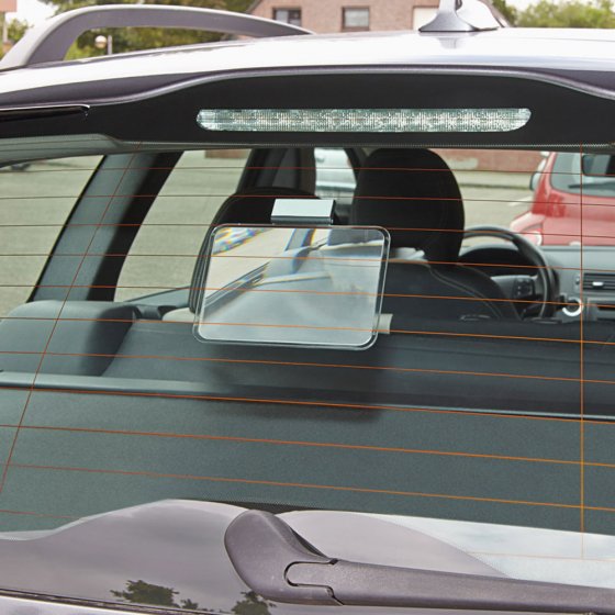 Rückwärts einparken ohne Parktronic und ohne Rückfahr-Kamera ist bisweilen schwierig – und jeder „Fremdkontakt“ kann teure Folgen haben. Die EINPARK- UND RANGIERHILFE verschafft Ihnen im Nu eine erstaunlich gute Sicht auf den Bereich hinter der Heckstoßstange. Das Geheimnis ist eine Spezial-Reflektor-Linse, die einfach von innen an die Heckscheibe geklebt wird – Ihr Blick wird dadurch seitlich nach unten gelenkt - also direkt hinter das Fahrzeug. Maße (L x B): ca. 13,5 x 9 cm.