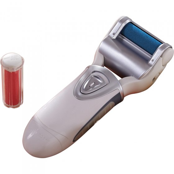 werden verhornte Stellen schnell, sanft und gründlich entfernt. Hautschüppchen und Schwielen verschwinden, raue Stellen werden samtweich geglättet. Und das ohne jede Verletzungsgefahr! Lieferung mit zwei auswechselbaren Schleifrollen: 1 x grob, 1 x fein. Komfortabler, kabelloser Betrieb über zwei Mignon-Batterien (separat erhältlich). Maße: ca. 6 x 16 x 4 cm. Nach Gebrauch einfach unter laufendem Wasser abspülen. Endlich beschwerdefreie, glatte Füße – Knopfdruck genügt!