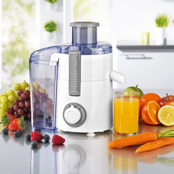 Rien n'est plus sain qu'un jus fraîchement pressé de fruits ou de légumes. L'été est sans aucun doute la saison favorite des jus ! Cet EXTRACTEUR DE JUS ÉLECTRIQUE au moteur puissant (250 W) vous facilite la préparation : grâce à deux vitesses et à la touche "pulse", vous pourrez extraire les jus des fruits à chair molle ainsi que celui des pommes, poires et carottes. Le tout avec un rendement exceptionnel. Les restes de pulpe et les pépins sont retenus par le tamis en acier inox à pores fins et atterrissent dans le réservoir à restes grand format (300 ml). 230 V. Dimensions (l x H x P) : env. 16 x 29 x 21 cm. Dégustez des vitamines sous forme liquide !