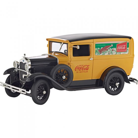 Mit dem Ford-Modell T, der „Tin Lizzy“, hatte Ford einen Millionenseller gelandet – und danach die Entwicklung neuer Modelle schlicht vernachlässigt. Ende der Zwanzigerjahre war es dann höchste Zeit für einen Nachfolger: Das Ford-Modell A wurde in aller Eile entwickelt und war daher kein technischer Meilenstein, es zeichnete sich aber durch beispiellose Robustheit und Anspruchslosigkeit aus. Ergebnis: Ford erkämpfte sich mit ihm die Marktführerschaft zurück. Noch heute gibt es über eine halbe Million fahrtüchtige Ford-A-Fahrzeuge! Das Modell FORD A LIEFERWAGEN „COCA COLA“ von 1931 ist aus Zink-Druckguss mit Anbauteilen aus Kunststoff. Es hat eine lenkbare Vorderachse und aufklappbare Türen; Heckklappe und Falt-Motorhaube lassen sich ebenfalls öffnen. Im Motorraum präsentiert sich der legendäre 40-PS-Vierzylinder-Motor. Abmessungen (L x B x H): ca. 23 x 10 x 10 cm. Ergänzen Sie Ihre Sammlung um Fords zweite Nummer eins!
