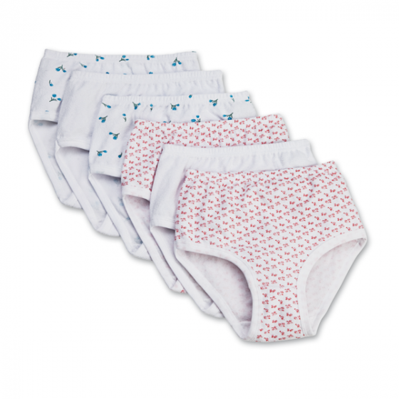 Nur wenn die Wäsche gut sitzt und sich angenehm auf der Haut trägt, fühlt „Frau“ sich rundum wohl! Der hochwertige Frottee der Slips schmiegt sich weich und wärmend an den Körper an. Dank des hohen Baumwollanteils sind sie auch atmend und saugfähig. Der Durchzug-Gummi in der Hüfte und die Rippenabschlüsse am Bein sorgen für exzellenten Halt ohne einzuengen. 80% Baumwolle, 20% Polyester, maschinenwaschbar. Das 6er-Set umfasst 2 Slips in Uni-Weiß und 4 mit dezenten, floralen Druckmotiven.