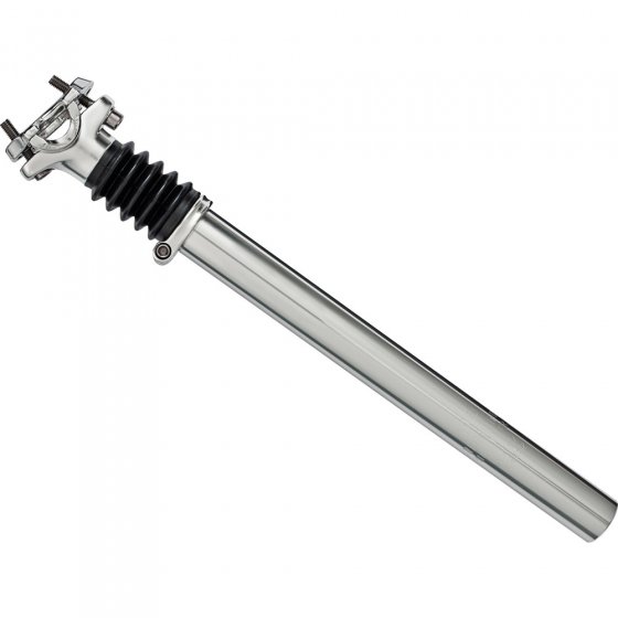Sie besitzen kein modernes „Full- Suspension“-Bike (= Fahrrad mit Vorderachsen- und Hinterachsen- Federung), möchten Ihren verlängerten Rücken beim Fahrradfahren aber trotzdem vor harten Stößen schützen? Mit der GEFEDERTEN SATTELSTÜTZE können Sie Ihr Fahrrad im Handumdrehen zum teilgefederten Bike aufrüsten: Tauschen Sie einfach die Serien- Stütze gegen diese Stütze aus! 40 mm Federweg und eine manuelle Dämpfungseinstellung verhindern, dass Bodenwellen und Schlaglöcher ungefiltert zu ihrer Wirbelsäule durchdringen; das Radfahren wird ungleich komfortabler. Da die gefederte Stütze eine sehr niedrige Aufbauhöhe (86 mm) hat, können Sie sie auch dann verwenden, wenn Sie keine langen Beine haben. Der Rohrdurchmesser hat das Norm-Maß von 27,2 mm. Die Stütze ist mit den handelsüblichen Patentsätteln sämtlicher Hersteller kombinierbar. Gesamtlänge: 350 mm. Maximale Gewichtsbelastung: 100 kg. Machen Sie es sich bequem!