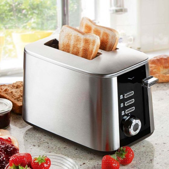 Patienter alors que vous avez l’estomac vide ? Pour tous les amateurs de petit-déjeuner, ce GRILLE-PAINS TURBO EN ACIER INOX permet de préparer des toasts parfaitement dorés en un temps record ! Grâce au nouveau système à parois chauffantes de 1 600 W au lieu des 1 000 W habituels, le modèle avec boîtier en acier inoxydable et tiroir ramasse-miettes est 50 % plus rapide qu’un grille-pain standard ! Le compte à rebours du bandeau lumineux DEL réduit également les temps d’attente. Avec ses 7 niveaux de brunissement, ses fonctions de réchauffage et de décongélation, vous pouvez vous régaler. La fonction de centrage automatique assure un brunissement uniforme - sans coins brûlés. Dimensions (L x H x P) : env. 28 x 20 x 17 cm. Fonctionnement sur secteur, 230 V. Livré sans réchauffe-viennoiserie. Commencez votre journée en mettant le turbo !