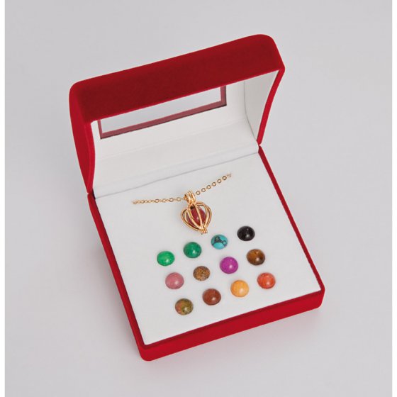 „Trägst du schon wieder ein neues Schmuckstück?“ Ob und wann Sie das Geheimnis lüften, liegt ganz bei Ihnen... Denn was niemand weiß: Der meisterlich geformte Anhänger bei diesem HALBEDELSTEIN-SCHMUCKSET lässt sich öffnen! 13 herrliche Halbedelsteine lassen sich so ganz Ihren Vorstellungen entsprechend kombinieren. Ob leuchtender Türkis, goldbraunes Tigerauge, zart rötlicher Rosenquarz oder sonnengelbe Jade – Sie haben für jeden Anlass, für jede Stimmung und für jede Garderobe den passenden Schmuck! Frei schwebend glänzen die schönen Steine in der Fassung – und ziehen immer wieder bewundernde Blicke auf sich! Kette (ca. 45 cm mit 5 cm Verlängerung) und Anhänger vergoldet. Jedem der 13 Halbedelsteine (Ø je ca. 8 mm) wird eine besondere Symbolik nachgesagt – Freuen Sie sich darauf, sie zu entdecken!