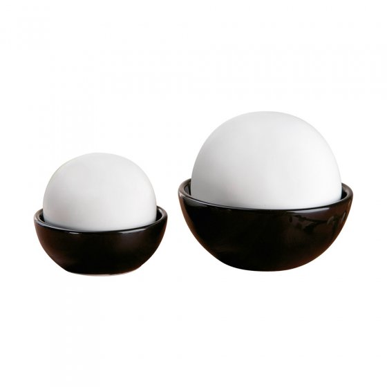 In der dunklen und kalten Jahreszeit ist die Raumluft deutlich trockener als in der warmen Jahreshälfte. Grund: Die Heizung raubt der Luft die Feuchtigkeit, und die Fenster werden seltener geöffnet. Die Folge sind austrocknende Schleimhäute in den oberen Atemwegen und eine erhöhte Anfälligkeit für Erkältungskrankheiten. Abhilfe schaffen die HANDGEARBEITETENLUFTBEFEUCHTER: Die Kugeln aus Steingut saugen sich mit Wasser voll und geben dieses nach und nach an die Raumluft ab. Eine echte Innovation ist das poröse Kugel-Material – es erhöht aufgrund von Kapillarkräften die Verdunster-Oberfläche. Stellen Sie die formschönen Feuchtigkeitsspender auf die Fensterbank, ins Regal oder direkt auf den Wohnzimmertisch! Durchmesser: ca. 12 cm (großer Luftbefeuchter) bzw. 9 cm (kleiner Luftbefeuchter). Füllmenge: 200 ml bzw. 50 ml. Tipp: Ein paar Tropfen Duftöl im Wasser machen die Luftbefeuchter auch zu Raumduftspendern.
