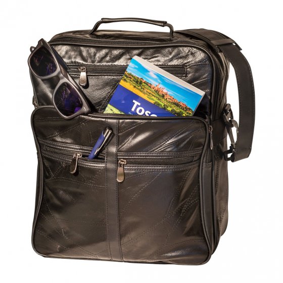 Auf Reisen wollen Sie alles Wichtige und Wertvolle nah bei sich tragen. Dazu gehören heute auch die elektronischen Geräte wie Digitalkamera, Tablet oder Notebook. In unserem eleganten und hochwertigen HERREN-REISEBEGLEITER sind sie durch eine Innenpolsterung gut geschützt. Und dank 14 l Stauvolumen und insgesamt 7 Fächern passt nicht nur viel rein, sondern Sie behalten auch die Ordnung über kleinere Dinge wie Brille und Smartphone. Maße (L x B x H): ca. 29 x 35 x 21 cm. Mit dem robusten Außenmaterial aus echtem Leder beweisen Sie zudem noch guten Stil – auch auf Reisen.