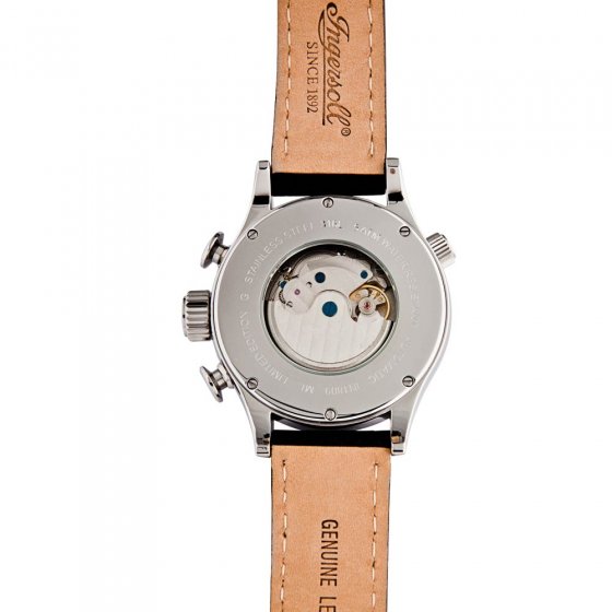 Im Laufe ihrer weltweiten Erfolgsgeschichte fertigten die Brüder Ingersoll einige der spektakulärsten Zeitmesser überhaupt. Ein echtes Prachtexemplar aus der traditionsreichen Uhrenschmiede ist auch die INGERSOLL „BULL RUN“. Der Blick auf das dunkel-schwarzbraune Zifferblatt mit den kontraststarken cremefarbenen Zeigern, Ziffern und Indexen ist immer wieder ein Hochgenuss! Das Automatikwerk (Kaliber 619) ist auf 20 Edelsteinen gelagert und zeugt von hoher Präzision. Robustes Gehäuse aus poliertem Edelstahl (Ø ca. 46 mm) mit gehärteter Mineralglasabdeckung (wasserdicht bis 5 ATM Prüfdruck). Mit Datums-, Wochentags- und Monatsanzeige, Zeiger und Ziffern nachleuchtend. Gehäuseboden aus Edelstahl mit einem Einsatz aus Mineralglas gibt freie Sicht auf die Unruh. Schwarzbraunes Lederarmband mit markanten Steppnähten und Edelstahl-Dornschließe. Einen so exklusiven Zeitmesser leistet man sich nicht jeden Tag – aber man hat sein Leben lang Freude daran!