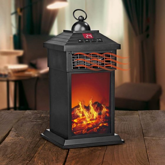 Qu’y a-t-il de plus agréable qu’une belle flambée dans la cheminée ? Sur pression d’un bouton, la LANTERNE SIMULATION FEU DE CHEMINÉE crée une atmosphère chaleureuse – à double titre : d’une part avec son imitation de feu de cheminée, et d’autre part avec la fonction de chauffage optionnelle. La température est réglable et s’affiche sur l’écran LC. Contrairement aux véritables feux de cheminée, la lanterne ne produit ni suie ni fumée, et bien entendu pas d’étincelles non plus. Alimentation secteur 230 V. Dimensions (L x l x H) : env. 14 x 14 x 30 cm. Savourez les moments de bonheur à la lueur chaude des flammes !