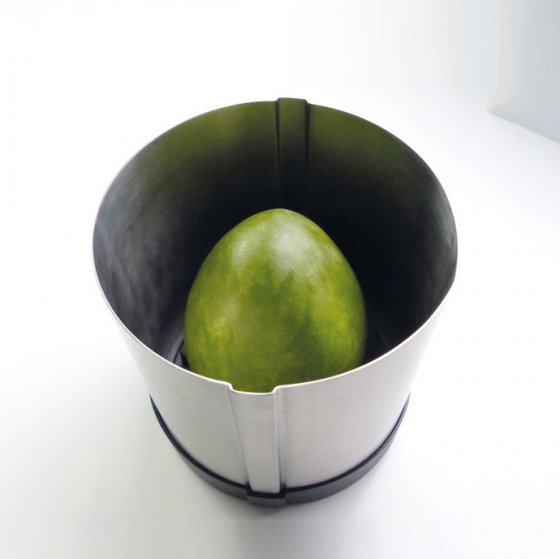 Eine reife Mango zu essen, ist ein echter Genuss, eine reife Mango zu verarbeiten nicht! Bis jetzt: mit dem smarten MANGOSCHNEIDER ist das köstliche Fruchtfleisch ruckzuck von Kern und Schale befreit. Ganz ohne klebrige Finger oder zeitraubendes „Vorarbeiten“ bis zur harten Mitte. Einfach die Frucht in den Halter stellen, den Edelstahl-Schneider in die Führungsschiene einlegen und nach unten drücken – schon haben Sie 8 perfekte Mangostücke, deren Schale sich ganz leicht am Rand des Behälters abstreifen lässt. Genießen Sie die Mango sofort oder nutzen Sie den beiliegenden Deckel, um sie im Behälter aufzubewahren. Spülmaschinengeeignet. Maße (Ø x H): ca. 14 x 17 cm. Praktisch, sauber, zeitsparend!