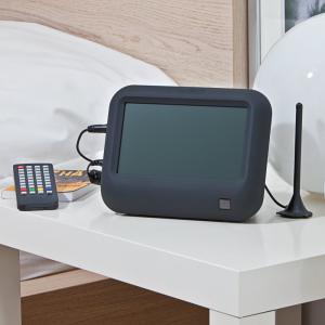 Avec ses dimensions compactes (env. 20 x 16 x 13 cm pour seulement 770 g) ce MINI TÉLÉVISEUR AVEC LECTEUR VIDÉO est imbattable en terme de maniabilité ! Vous pouvez le tenir dans la main pour regarder la télévision, le poser sur vos genoux ou le regarder dans votre lit : il vous suit partout ! Grâce à sa surface légèrement gommée, il tient bien en main et il est facile à entretenir. Il est donc également parfait en voyage, dans la cuisine ou pour regarder un match de foot sur la terrasse ! Il trouve sans problème les chaînes de télévision et de radio grâce à son antenne DVB-T, même à l’étranger !