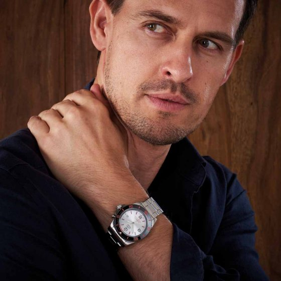 Le design de la MONTRE CINÉTIQUE AUTOMATIQUE « UMF » s'inspire incontestablement du look luxueux classique des montres de plongée. La technique, par contre, est beaucoup plus moderne : le mouvement automatique à condensateur (Seiko-Epson) transforme l'énergie cinétique en électricité nécessaire au fonctionnement. Cela permet une précision éminemment impressionnante pour les montres automatiques et une réserve de marche allant jusqu'à 6 mois ! Le boîtier et le bracelet sont en acier inoxydable, la lunette de couleur en céramique. Dimensions : Ø env. 42 mm, épaisseur du boîtier env. 11 mm. Offrez-vous une montre automatique qui est un vrai « morceau de choix », aussi bien du point de vue visuel que technique !