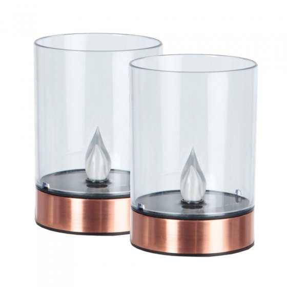 La soirée est d’une douceur agréable, mais il y a un peu de vent. Qu’à cela ne tienne ! Rien ne vous empêche de vous installer confortablement sur le balcon à la lueur changeante des bougies. En effet, le vent n’a aucune prise sur ce PHOTOPHORE SOLAIRE LED, qui imite à s’y méprendre la flamme d’une bougie. Dans la journée, le panneau solaire se recharge discrètement. À la tombée du jour, ce luminaire d’aspect cuivré et résistant aux intempéries (IP 44) s’allume automatiquement, et cela ne vous coûte pas un centime. Qui plus est, vous n’avez pas à vous inquiéter de gouttes de cire sur votre nappe ou de flamme laissée sans surveillance. Très décoratif également sur le rebord de la fenêtre ou au jardin. Dimensions (Ø x H) : env. 9 x 13 cm. Matière plastique robuste.