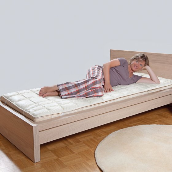 C’est prouvé : le matelas est un environnement propice à l’invasion des acariens qui s’y multiplient rapidement. Le risque pour la santé est élevé : il est prouvé que les substances qu’ils sécrètent sont l’un des principaux facteurs d’allergies graves et de maladies respiratoires… Le PROTÈGE MATELAS ANTI-ACARIENS en laine vierge traitée vous vient en aide ! Sa garniture 100 % laine vierge prive les acariens de leur environnement de prédilection. Son efficacité a été testée en laboratoire et il reste efficace même après un lavage à 40 °C ! Sa matière moelleuse laisse respirer votre peau, régule la transpiration, elle est sans feutre ni odeurs et assure une chaleur douillette. Dim. env. 90 x 200 cm, housse 100 % coton hypoallergénique. Préparez-vous à passer une bonne nuit de sommeil : même les personnes allergiques et sensibles dormiront parfaitement !