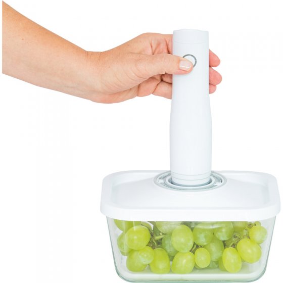 Aliments liquides ou solides : avec ce SET DE RÉCIPIENTS SOUS VIDE, vous pouvez conserver vos aliments à l’abri de l’humidité, de l’air et des germes nocifs. La mise sous vide réduit l’oxydation pour que vos aliments conservent jusqu’à 4x plus longtemps leur fraîcheur, mais également leurs vitamines, arômes, minéraux et autres éléments nutritifs. Fermer simplement les récipients de qualité en Tritan™ incassable avec le couvercle, placer la pompe à main sur la soupape du couvercle et pomper quelques fois : en quelques secondes, vos aliments sont prêts à être stockés sans adjonction d’aucun agent de conservation. Le joint en silicone du couvercle est parfaitement étanche, même lorsque vous n’avez pas encore effectué la mise sous vide, vous pouvez conserver sans souci des soupes et des sauces. Avec le système de mise sous vide, aucun risque de brûlure de congélation. Découvrez dès à présent tous les avantages de la mise sous vide. Pompe à vide d'air électrique (à commander séparément).