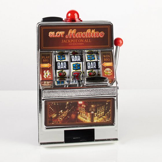 Vous aimez le suspense, mais ne voulez pas perdre votre part du gâteau ? La TIRELIRE BANDIT MANCHOT à usage domestique vous donne le choix : pour le frisson, il fonctionne comme ses grands frères de Las Vegas : si les 3 rouleaux s'arrêtent et que les bons symboles apparaissent au milieu, la partie est gagnée. Et toutes les pièces du compartiment à monnaie sont alors restituées ! Le compartiment tirelire supplémentaire (fente sur le haut de la façade arrière) vous permet de conserver vos économies en toute sécurité. Alimenté par 2 piles AA (à commander séparément). Dimensions (l x H x P) : env. 14 x 19 x 10 cm. Économisez votre argent avec ce classique des casinos !