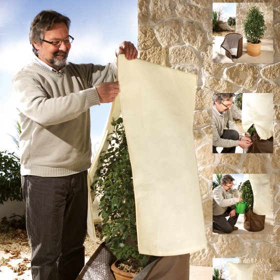 Alle Jahre wieder ist es soweit: Austrocknung und Kälte, Wind und Regen setzen Ihren schönen Pflanzen hart zu ... Doch das muss nicht sein! Denn damit Sie auch im nächsten Frühjahr wieder viel Freude an Ihren grünen Schützlingen haben, gibt es den TOPFSCHUTZ THERMOPLUS. Er schützt Ihre gepflegten Ranken, Buchsbäume, Rosensträucher, Rhododendren, Kübelpflanzen und Co. vor Minusgraden, Temperaturschwankungen und Austrocknung. In der starken Vliestasche sorgen die doppelte Luftpolsterfolie und eine 4 cm dicke Styroporplatte mit Drainage für zusätzliche Dämmung. Besonders praktisch: Dank des Schnür- und Klettverschlusses ist das Ein- und Auspacken ruckzuck erledigt! Maße: klein: ca. 45 cm Ø, groß: ca. 65 cm Ø. Freuen Sie sich über kräftige Triebe und neue Blüten – der praktische Winterschutz-Helfer macht’s möglich!