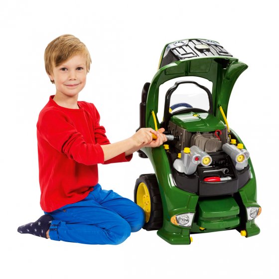 Kinder lieben es, zu experimentieren – steigern Sie diese Begeisterung mit unserem genialen TRAKTOR-REPARATUR-SET! Das Vorderteil mit Rädern, Motor, Lampen und Cockpit fordert von kleinen KFZ-Schraubern vielseitige Reparaturen und fördert die Geschicklichkeit: Ob Räderwechsel, Karosserieteiletausch oder Ölstandsmessung – es gibt so viel zu entdecken. Passendes Werkzeug ist inklusive. Hupe, Zündschloss und Lichtanlage erzeugen Licht und Sound und geben sogar Rückmeldung, ob die Reparatur der Autobastler erfolgreich war (Betrieb über 8 Micro-Batterien, separat erhältlich). Maße (B x H x T): ca. 53 x 43 x 40 cm. Da leuchten zu Weihnachten nicht nur Kinderaugen mit den Frontscheinwerfern um die Wette!