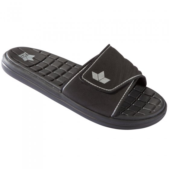 Diese ULTRALEICHTE BADEPANTOLETTE wirkt nicht nur außergewöhnlich gepflegt, sie ist auch extrem fußfreundlich! Ihr federgewicht (nur ca. 120 g!) vermittelt ein angenehm „schwereloses“ Laufgefühl – und ist ideal für Urlaubskoffer oder Wochenendtasche! Durch die weich gepolsterte Sohle fühlen Sie längst nicht jedes Steinchen, und ihre Rautenstruktur lässt Nässe ablaufen. Mit dem Klettverschluss lässt der Schuh sich vollständig öffnen und individuell Ihrem Fuß anpassen. Schnelltrocknendes Synthetik-Obermaterial in Schwarz-Silber, rutschhemmende Laufsohle. Eine Badepantolette mit fabelhaftem Preis- eistungsverhältnis, die sich an der Strandbar, im Schwimmbad oder am Hotelpool sehen lassen kann!