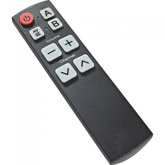 Mit dieser UNIVERSAL-FERNBEDIENUNG können zwei Geräte, wie z.B. Fernseher, SAT-Receiver, Videorekorder, etc. gleichzeitig gesteuert werden. Diese ist schlicht gehalten und einfach zu bedienen. Sie kommt mit wenigen Tasten aus, über welche die wichtigsten Funktionen zur Verfügung stehen – laut, leise und lautlos, Programm vor und zurück, Umschalten von einem zum anderen Gerät und natürlich an und aus. Geeignet für nahezu alle handelsüblichen Geräte. Maße ca. 18 x 5 x 2 cm. Betrieb über 2 Micro-Batterien (separat erhältlich). Auch perfekt als Ersatz für defekte oder verloren gegangene Fernbedienungen.