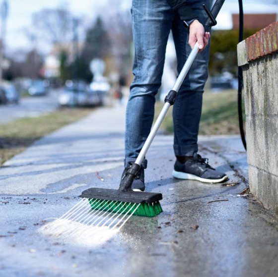 Um den Gehweg oder Kellereingang, die Einfahrt oder Terrasse zu säubern, braucht man Besen und Hochdruckreiniger, vielleicht auch noch einen Abzieher. Der teleskopierbare WASSER-BESEN „AQUA-CLEAN“ ist alles in einem! Schließen Sie ihn einfach am Gartenschlauch an und rücken Sie dem Schmutz auf Pflastersteinen und Fliesen mit Kunststoffborsten und Wasser aus 14 Düsen zu Leibe! Zusätzlich zum Bürstenaufsatz mit Gummilippe sind im Lieferumfang 2 Spritzdüsenaufsätze enthalten. Die Wassermenge bestimmen Sie per Dosierhebel. Maße mit Besenaufsatz (L x B x H): ca. 95–151 x 32 x 10 cm. Sauberkeit auf allen Wegen – nichts leichter als das!